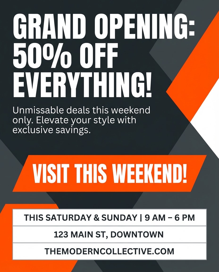 “I was about to pay $350 to a designer for our grand opening flyer. Found this instead and honestly? It looks just as good. Took maybe 45 seconds. My partner couldn't believe I made it myself.”